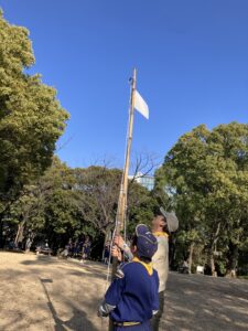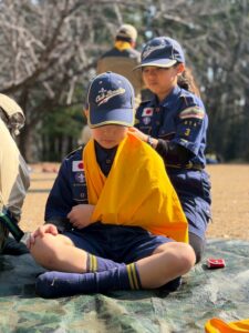 ロープの練習の成果を活かしながらゲームで旗揚げ対抗戦!